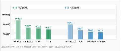 学服装设计刚毕业,基本工资5000左右,工资2-3年!只要综合素质不是很差,都能拿到6500以上的工资,在 目前所有的行业里面来说,服装设计师的平均工资是最高的。下面以上海服装设计师的工资数据(权威数据)为例,和大家分享一下: